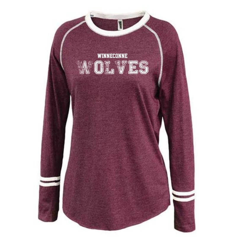 Winneconne Wolves Ladies Long Sleeve Ringer Stripe Crew T-shirt